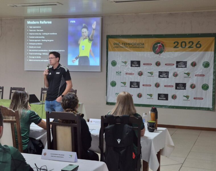 Pré-temporada da arbitragem para a Série B do Catarinense ocorre em Balneário Arroio do Silva Imprensa FCF·16 de abril de 2026A pré-temporada da arbitragem para o Campeonato Catarinense da Série B 2026 teve início da parte presencial nesta...destaqueFCFNOTÍCIAS·Nenhum comentário·0