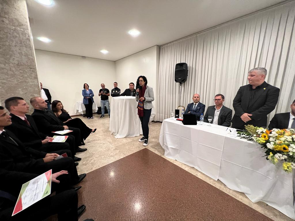 Foi dada a largada ao 21º Seminário da Arbitragem Catarinense. O evento foi aberto na noite desta sexta-feira (24/06) com a formatura dos alunos da Escola Catarinense de Arbitragem Gilberto Nahas, turma 2021, e homenagens a parceiros do Sindicato dos Árbitros de Santa Catarina (Sinafesc) e Federação Catarinense de Futebol (FCF) e profissionais que alcançaram marcas expressivas na arbitragem.