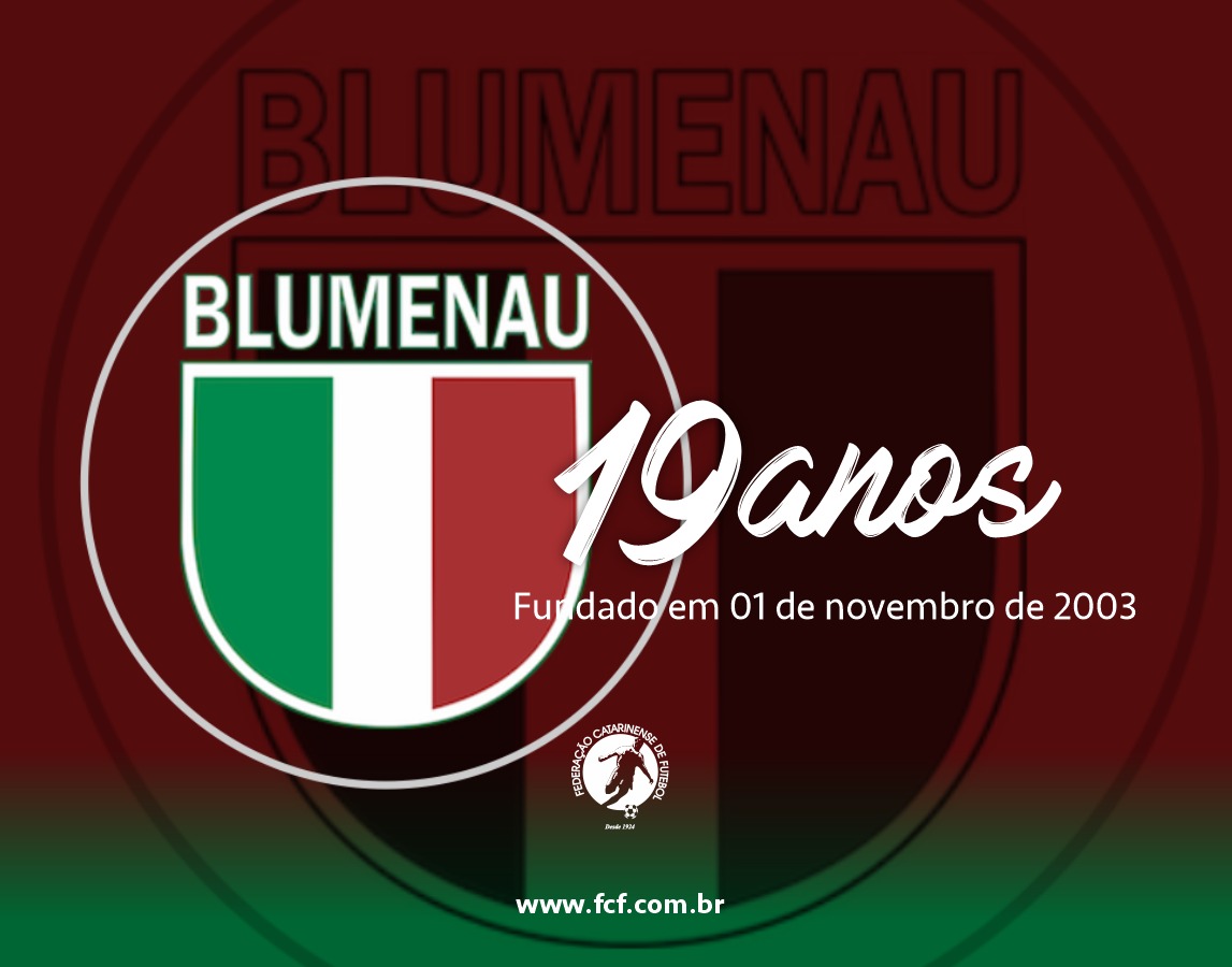A Federação Catarinense de Futebol (FCF), em nome da gestão Rubens Angelotti e diretoria, parabeniza o Blumenau pelo aniversário e deseja sucesso.
