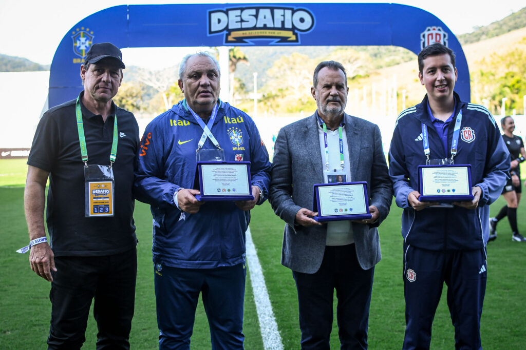 Antes da bola rolar, o presidente do clube do Barra FC, Bene Sobrinho, entregou placas comemorativas para a Federação Catarinense de Futebol (FCF), Confederação Brasileira de Futebol (CBF) e Federação Costarriquenha de Futebol (Fedefutbol) em alusão a partida. O presente visou reconhecer o confronto como um marco de abertura do estádio para grandes competições e o início de um legado dedicado à formação de novas gerações. O presidente da FCF e vice-presidente da CBF, Rubens Angelotti, foi homenageado com a placa.