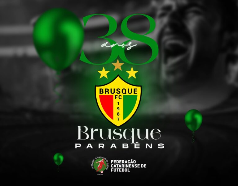 A Federação Catarinense de Futebol (FCF), em nome do presidente Rubens Angelotti e diretoria, parabeniza a todos os dirigentes, colaboradores, atletas e torcedores do Brusque por mais um aniversário.