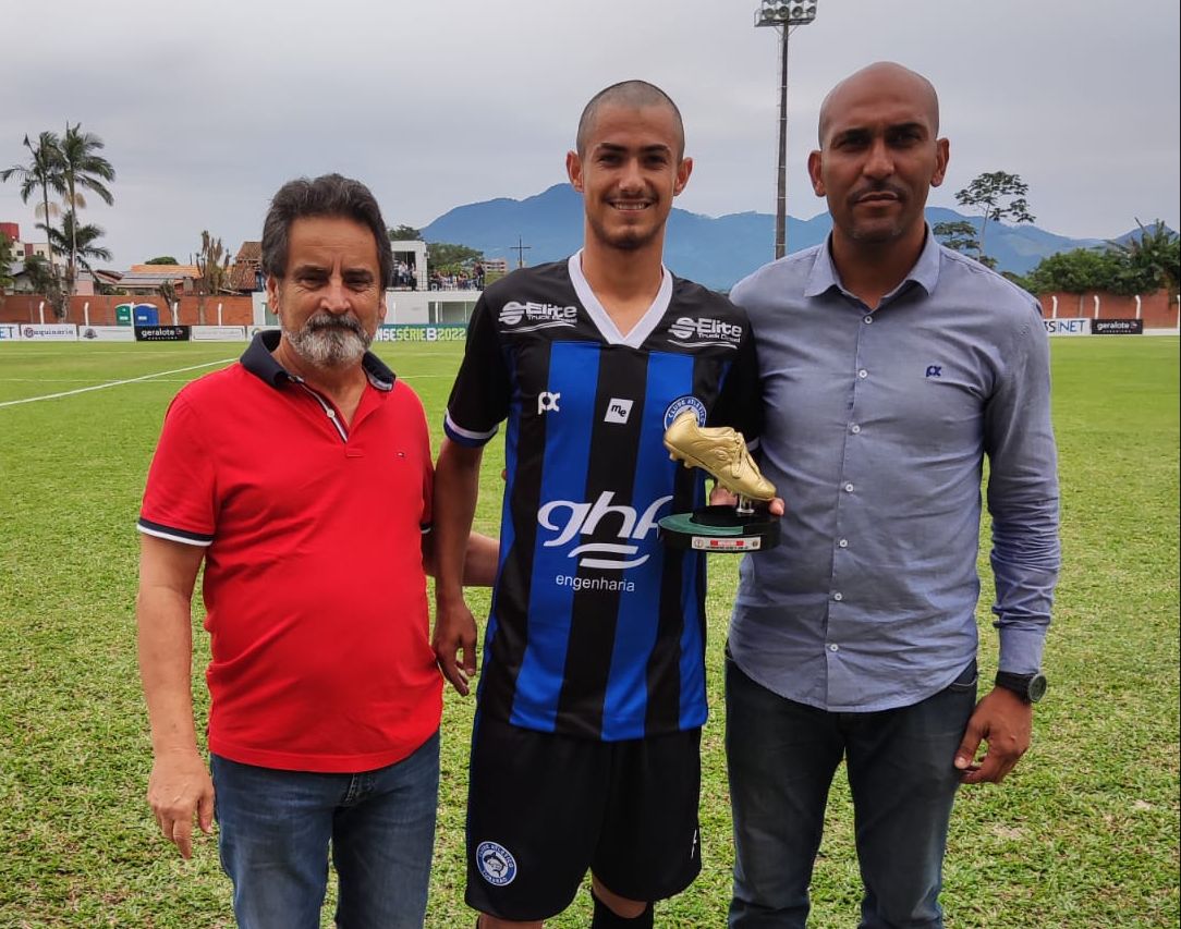 O jogador do Atlético Tubarão, João Vitor, foi um dos dois artilheiros do Campeonato Catarinense Sub-20 da Série B 2022, que se encerrou na última quarta-feira. Ele recebeu a premiação pelo Diretor de Competições da Federação Catarinense de Futebol (FCF), Carlos Crispim, antes do início do jogo deste sábado, em Indaial.