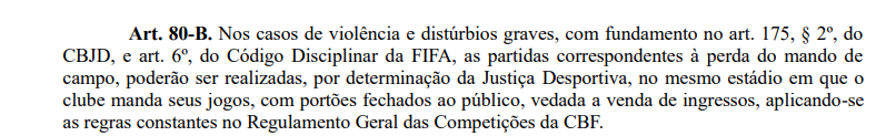 A decisão determina o cumprimento do disposto no art. 80 B do Regulamento Geral de Competições da FCF, conforme o texto abaixo: