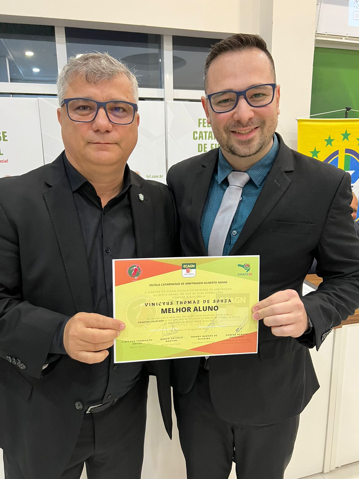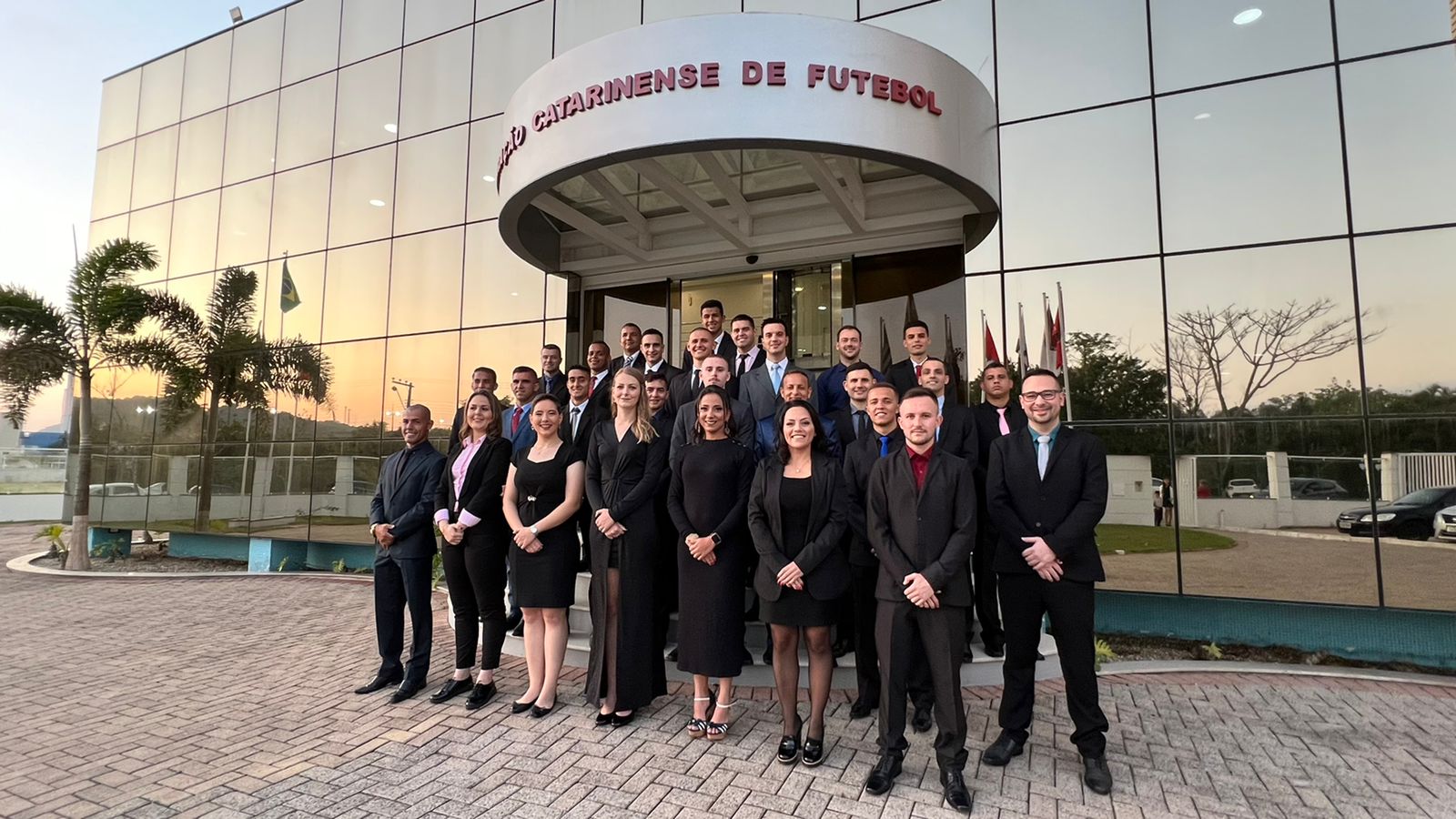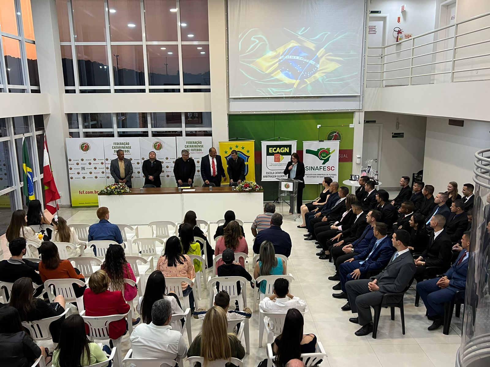 A Escola Catarinense de Arbitragem, Federação Catarinense de Futebol (FCF) e Sindicato dos Árbitros (Sinafesc) concluíram mais um curso de árbitros. Os 40 novos árbitros de futebol receberam os diplomas em solenidade de formatura realizada na noite de sábado (27/08) na sede da FCF, em Balneário Camboriú.