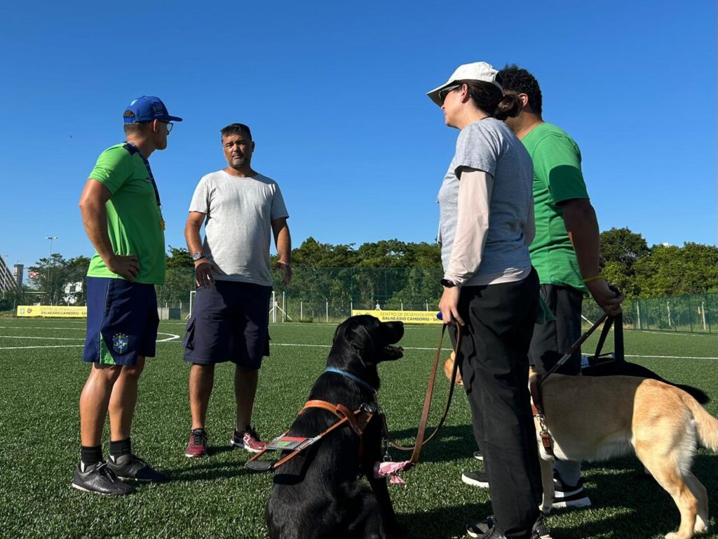 Localizada ao lado da sede da FCF, a Helen Keller – Escola de Cães Guias, atua desde 2000 com a missão de dar um novo sentido à vida de milhares de pessoas com deficiência visual. Nesta terça-feira (07/01) profissionais da instituição vieram ao Centro de Desenvolvimento e foram recebidos pelo administrador do CD, Jefferson Schmidt, e pelo coordenador do Projeto Gol do Brasil em Balneário Camboriú, Fernando Pereira. Eles reiteraram o apoio ao projeto e colocaram o campo à disposição para o treinamento, respeitando o cronograma de atividades do local.