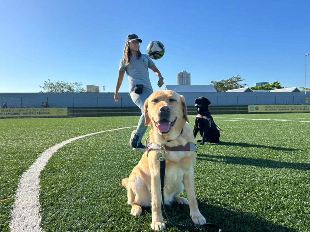 Neste primeiro momento foram realizadas atividades durante os treinos do Projeto Gol do Brasil. “O espaço aqui é excelente. Por exemplo, aqui a gente está trabalhando com eles a distração com pessoas e bolas. Isso no futuro, quando eles estiverem com uma pessoa cega, eles podem se distrair com uma bola sendo jogada, ou algum instinto. Assim a gente começa a fazer esse trabalho com eles”, ressalta André Bica, treinador e instrutor de mobilidade com cães guias.