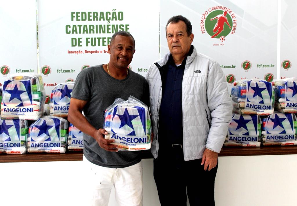A Federação Catarinense de Futebol (FCF), através do presidente Rubens Angelotti, realizou na tarde desta quinta-feira (21/07), a doação de cestas básicas para a Associação de Garantia ao Atleta Profissional de Santa Catarina (AGAP/SC). A entrega foi feita pelo presidente da FCF, Rubens Angelotti.