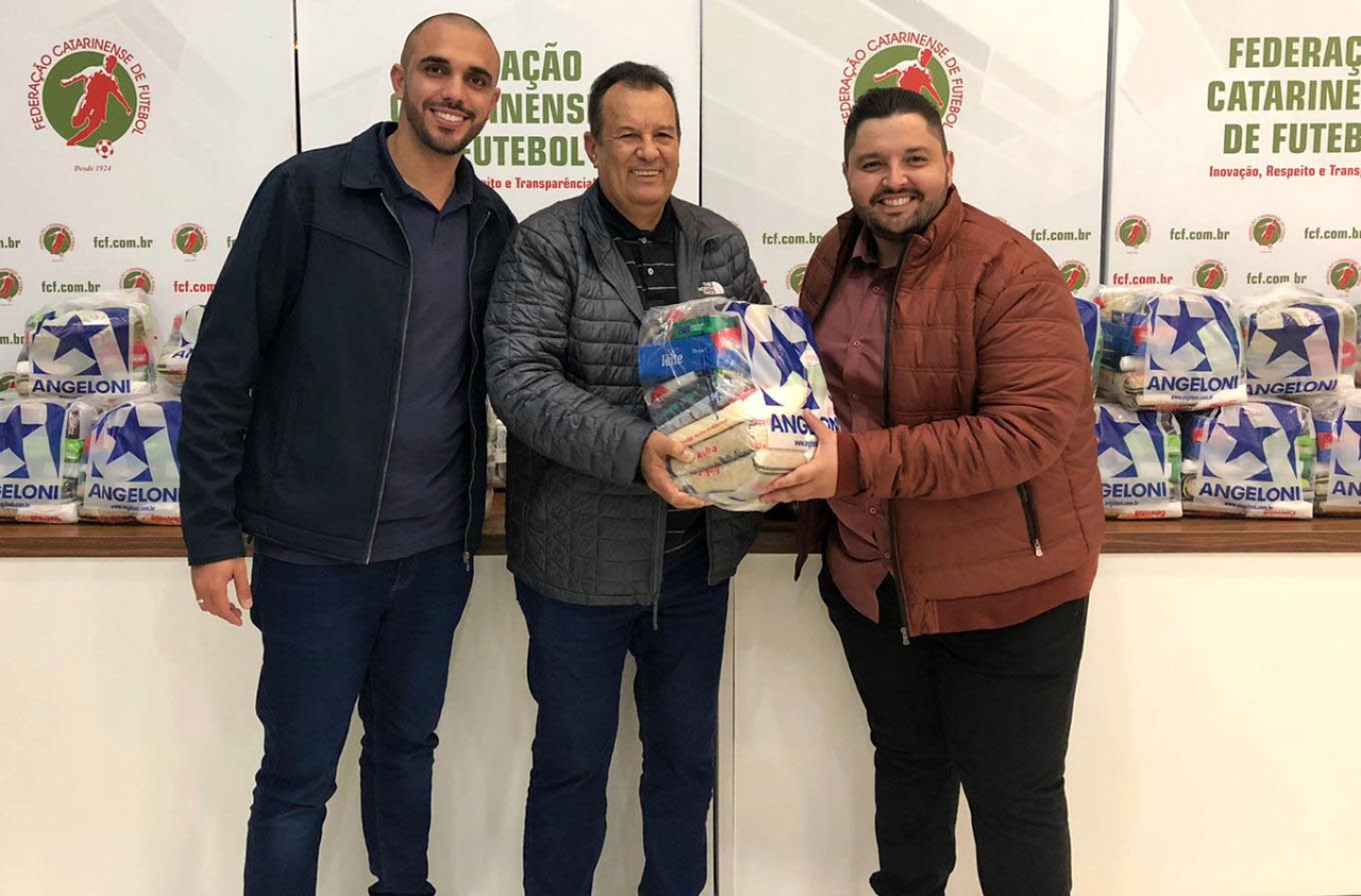 No encontro a Federação Catarinense de Futebol promoveu a doação de cestas básicas para a Associação de Moradores do Bairro dos Municípios destinar para famílias em dificuldade da comunidade.
