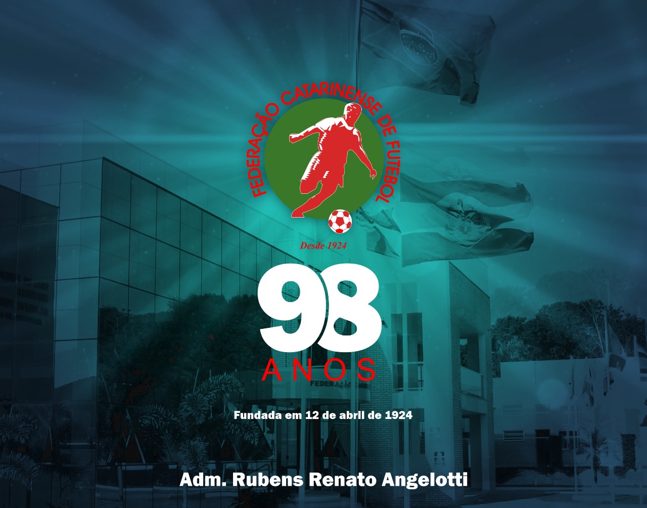 A Federação Catarinense de Futebol (FCF) completa aniversário nesta terça-feira (12/04). Com uma ampla história a serviço do desenvolvimento do futebol em Santa Catarina, fundada em 1924, a FCF comemora neste 12 de abril 98 anos. Em uma série de desafios, um histórico de grandes e inesquecíveis conquistas.