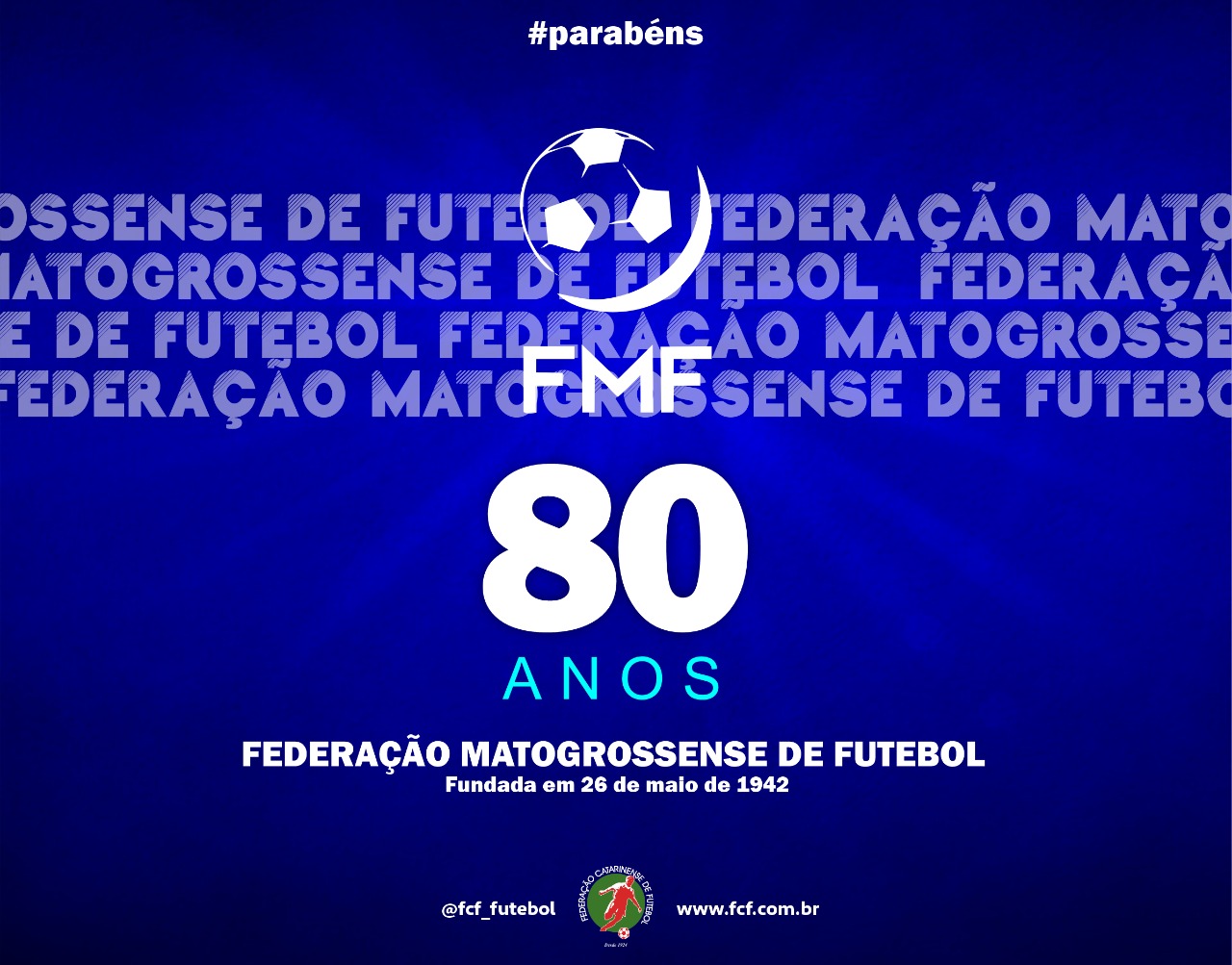 A Federação Mato-Grossense de Futebol completa nesta quinta-feira (26/05) 80 anos de fundação. O presidente da Federação Catarinense de Futebol, Rubens Angelotti, parabeniza a Federação Mato-Grossense de Futebol, em nome de seu presidente Aron Dresch, e deseja sucesso a entidade.