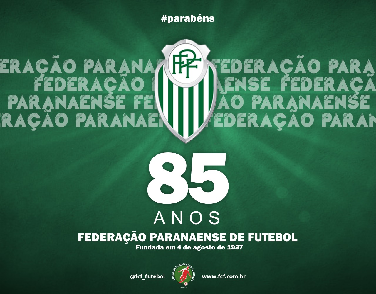 A Federação Paranaense de Futebol comemora nesta quinta-feira (04/08) 85 anos de fundação. O presidente da Federação Catarinense de Futebol, Rubens Angelotti, e diretoria, parabenizam a Federação Paranaense de Futebol, em nome de seu presidente, Hélio Pereira Cury, pela data e deseja sucesso a entidade.