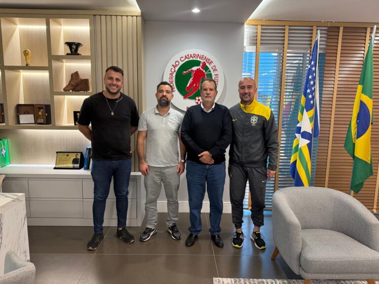 O presidente da Federação Catarinense de Futebol (FCF) e vice-presidente da Confederação Brasileira de Futebol (CBF), Rubens Angelotti, recebeu na tarde desta segunda-feira (01/09) dirigentes da Fundação Municipal de Esportes de Camboriú para tratar da instalação do Projeto “Gol do Brasil” no município.