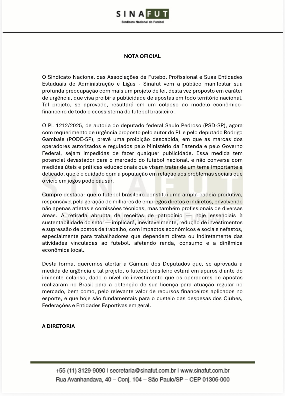 Home destaque Nota oficial – SinafutImprensa FCF·9 de abril de 2026destaqueFCFNOTÍCIAS Screenshot Compartilhe isso: Imprimir(abre em nova janela) Imprimir Compartilhar no WhatsApp(abre em nova janela) WhatsApp Compartilhar no Facebook(abre em nova janela) Facebook Compartilhar no X(abre em nova janela) 18+ Compartilhar no LinkedIn(abre em nova janela) LinkedIn Relacionado