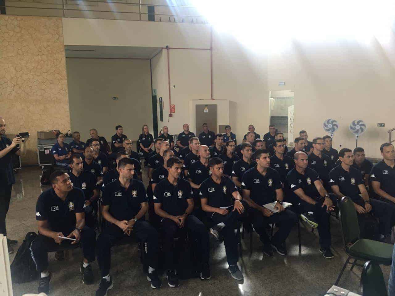 As atividades seguem nesta noite, com vídeos e slides na sala de aula, e a parte prática será iniciada nesta sexta-feira (29). Os 32 árbitros e assistentes se revezaram em campo e sala do VOR para treinar o uso da ferramenta do árbitro de vídeo.