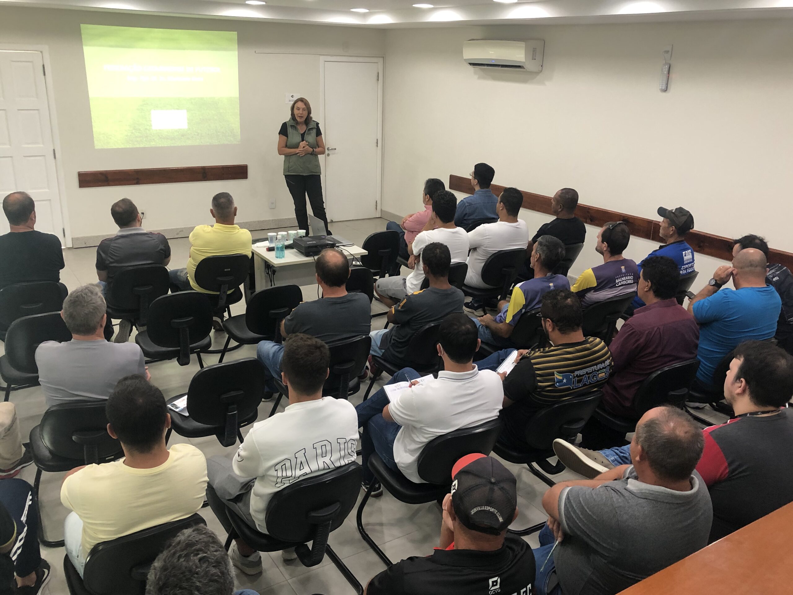 O workshop com o foco em manutenção de gramado, promovido pela Federação Catarinense de Futebol (FCF), movimentou clubes filiados durante todo o dia desta quinta-feira (07/04) em Balneário Camboriú. Participaram do encontro 39 profissionais de equipes catarinenses em busca de conhecimento para a melhoria nos seus respectivos gramados.